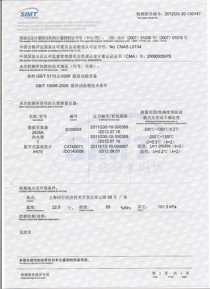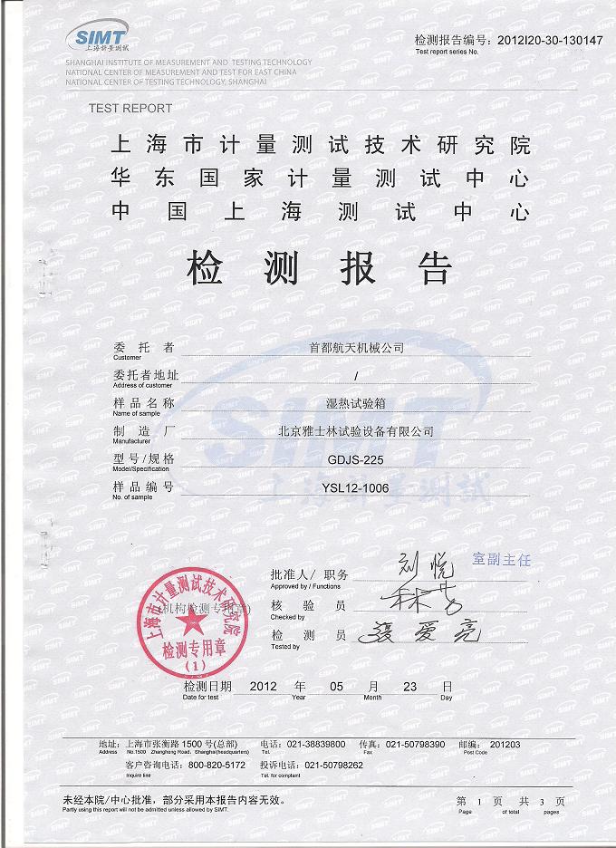 >>高低溫交變濕熱試驗(yàn)箱檢測報告-上海計量院-首都航天