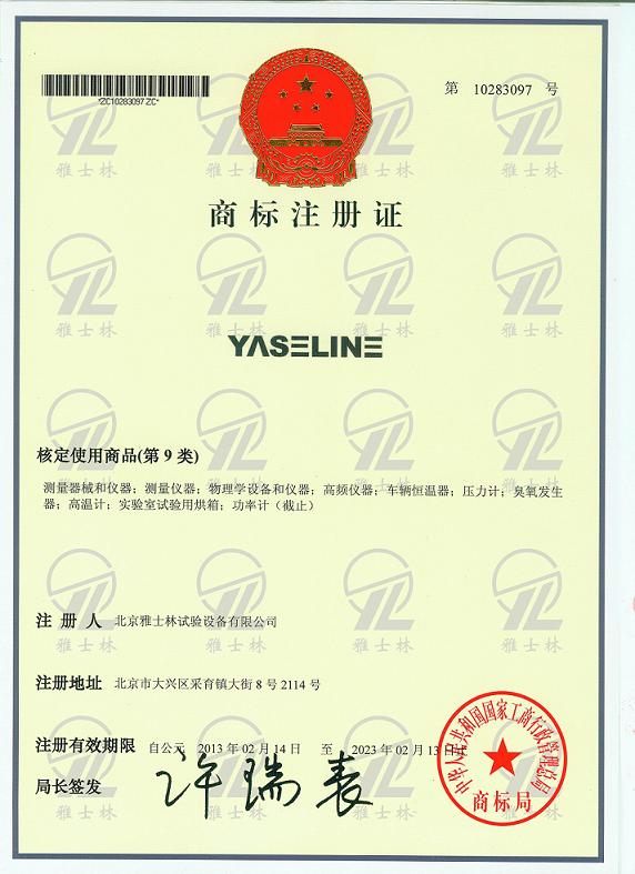>>高端環(huán)試品牌YASELINE注冊商標獲得通過
