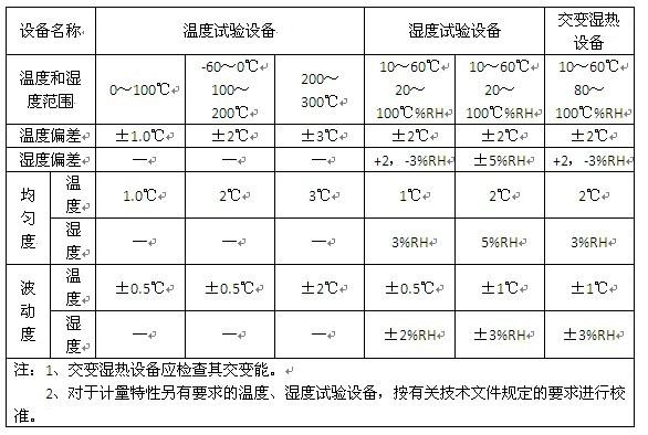 高低溫系列試驗(yàn)箱出廠(chǎng)前廠(chǎng)家都會(huì)自帶一份內(nèi)部檢測(cè)報(bào)告,如內(nèi)部檢測(cè)報(bào)告不能滿(mǎn)足用戶(hù)要求時(shí),可請(qǐng)計(jì)量院上門(mén)對(duì)設(shè)備進(jìn)行檢測(cè)并出具檢測(cè)報(bào)告(需付費(fèi))。計(jì)量院會(huì)對(duì)高低溫系列試驗(yàn)箱的溫度偏差、溫度均勻度、溫度波動(dòng)度,相對(duì)濕度偏差、相對(duì)濕度均勻度、相對(duì)濕度波動(dòng)度進(jìn)行計(jì)量,其技術(shù)要求如下: