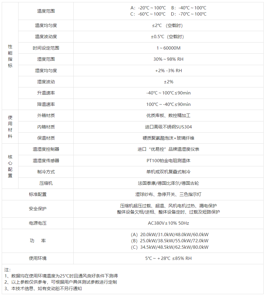 控制方式:熱平衡調(diào)溫調(diào)濕方式;所有電器均采用(施耐德)系列產(chǎn)品。