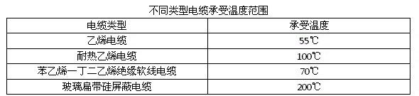高低溫試驗(yàn)箱針對(duì)需要外接電纜的試樣電纜一定要使用經(jīng)受得住測(cè)試條件的電纜,下表是各類(lèi)電纜和其承受溫度的表格。