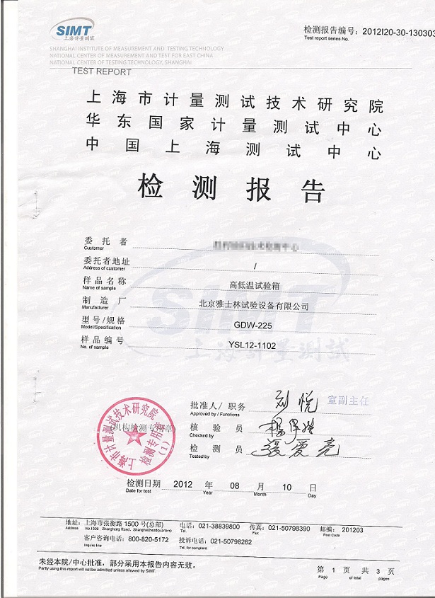 ·高低溫試驗箱檢測報告模板下載--上海計量院
